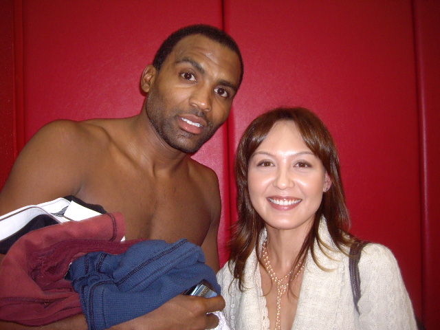 サンタバーバラでキャンプを行っているNBAのロサンゼルス・クリッパーズのカッティーノ・モーブリー選手と記念撮影!